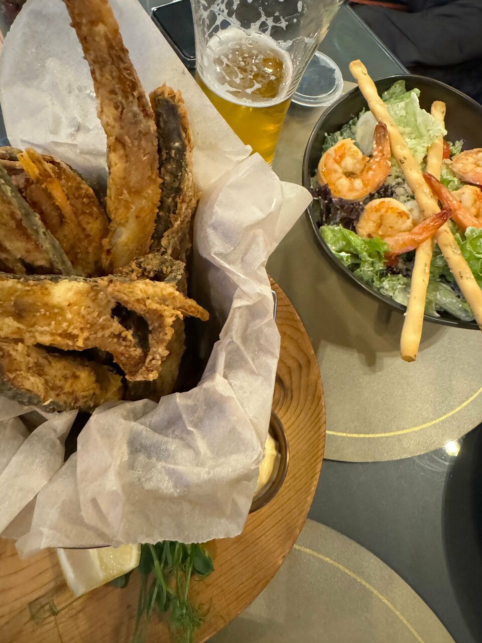 Отличное место, обслуживание на 5, вежливый персонал, все быстро, оперативно, еда очень вкусная, взяли всего по чуть-чуть, морепродуктов наелись рыбки, и по цене получилось недорого. По мне единственное смутило, что несколько маленькое заведение, не всем хватит места в сезон или вечером, когда хочется посидеть и отдохнуть. Надо расширяться