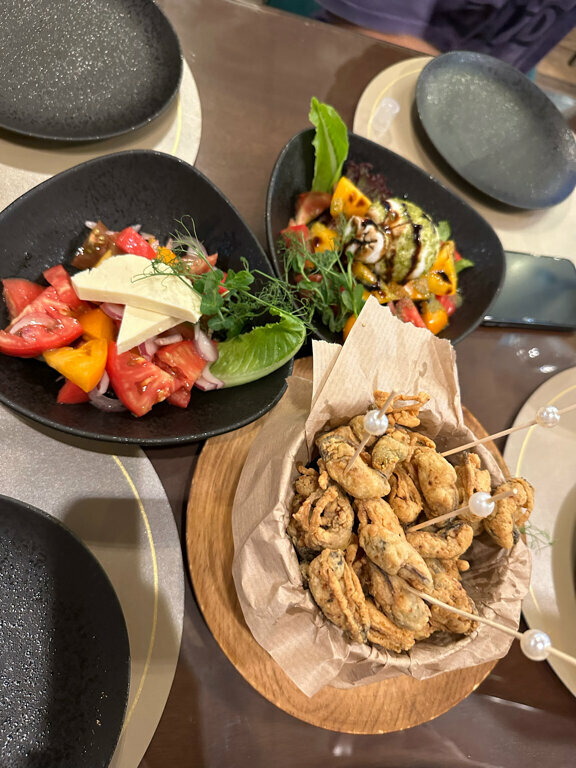 В последний вечер нашего пребывания в Алуште сходили в этот ресторан. Понравилось всё - и обслуживание, и подача блюд, и сами блюда. Себе я взяла салат с хрустящими баклажанами и страчеллой. Браво повару! Все очень гармонично и сбалансировано. Мужу понравилось пиво и ведёрко ставриды.