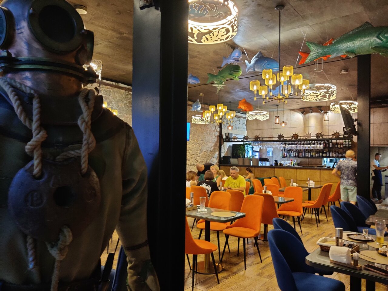 В этом баре поразило меню: такого разнообразия блюд из морепродуктов не видели нигде до сих пор! Заказав баклажан в хрустящей корочке и стейк крымской камбалы, насладились вкусом и эстетичностью подачи блюд. И обстановка в баре очень доброжелательная!